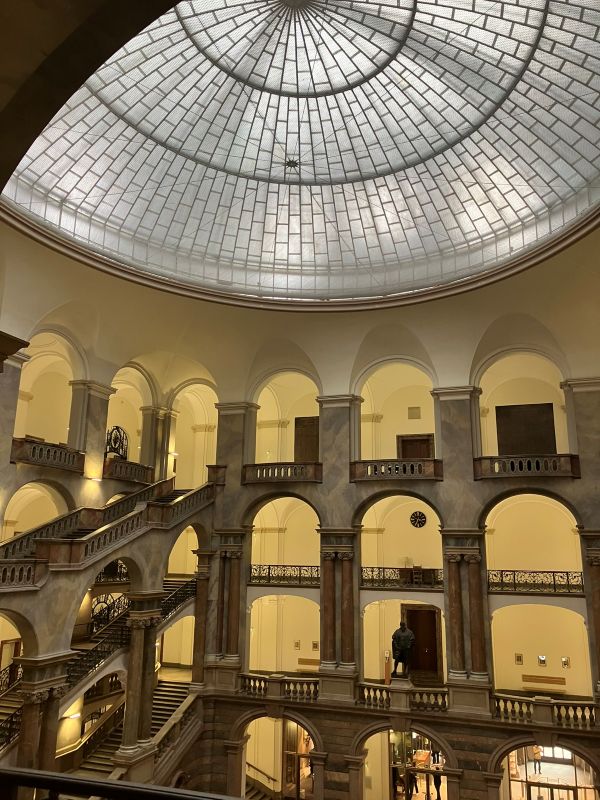 Blick vom Lichthof des Justizpalasts hinauf zur Glaskuppel (Foto: K. Diekmann)