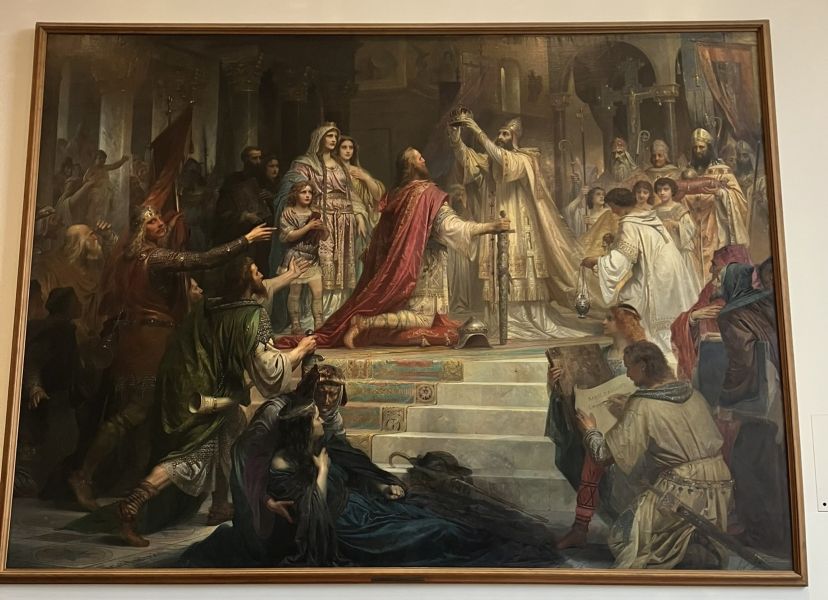 Gemälde zur Krönung Karls des Großen an der Außenwand des Plenarsaals (Foto: K. Diekmann)